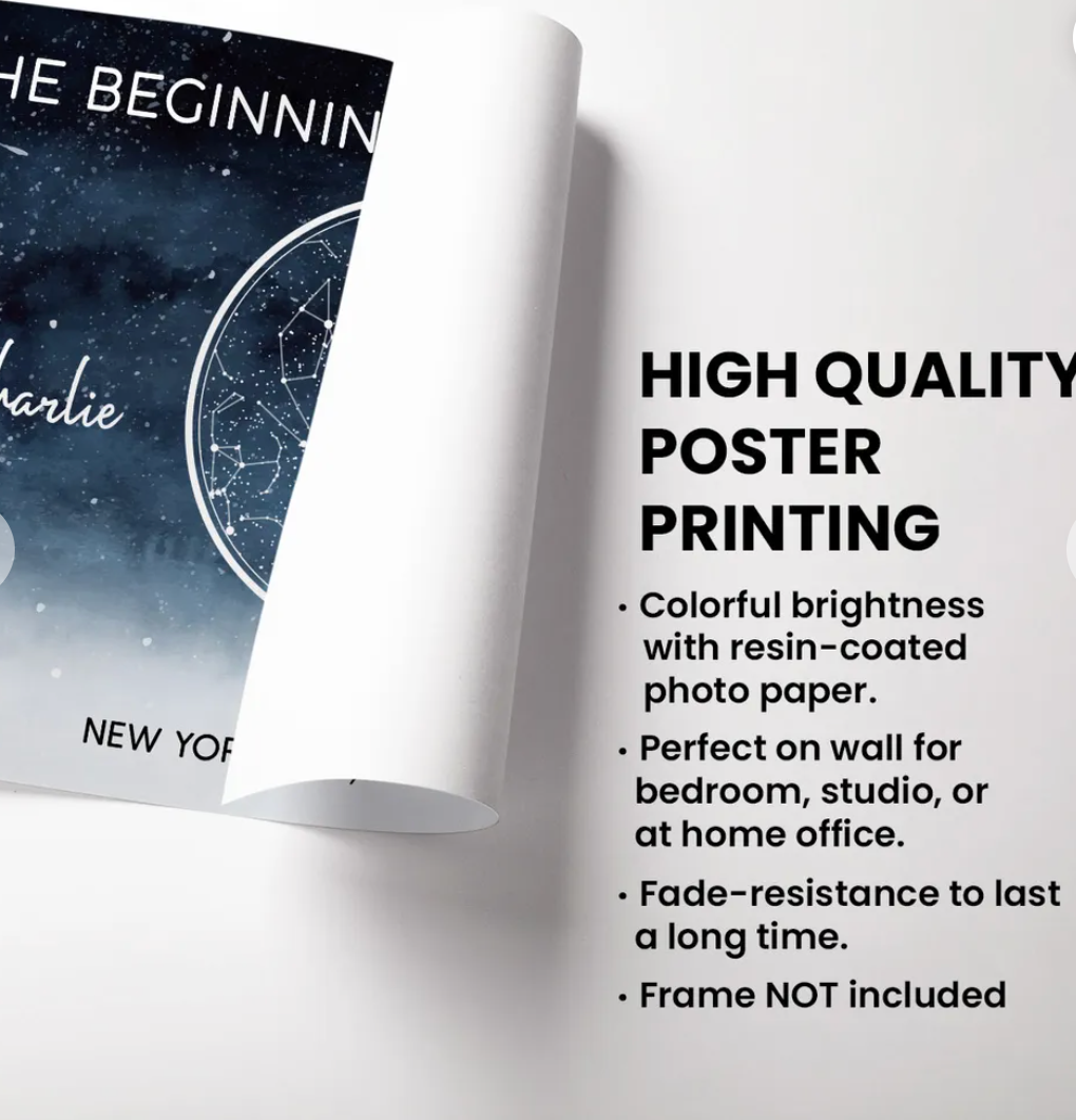 urprise your Family or friends with this unique personalized print gift! Premium luster photo paper delivers highly saturated poster prints with vivid, lifelike images. Similar to traditional silver halide prints. The poster is a practical & impactful way to decorate any living space.
