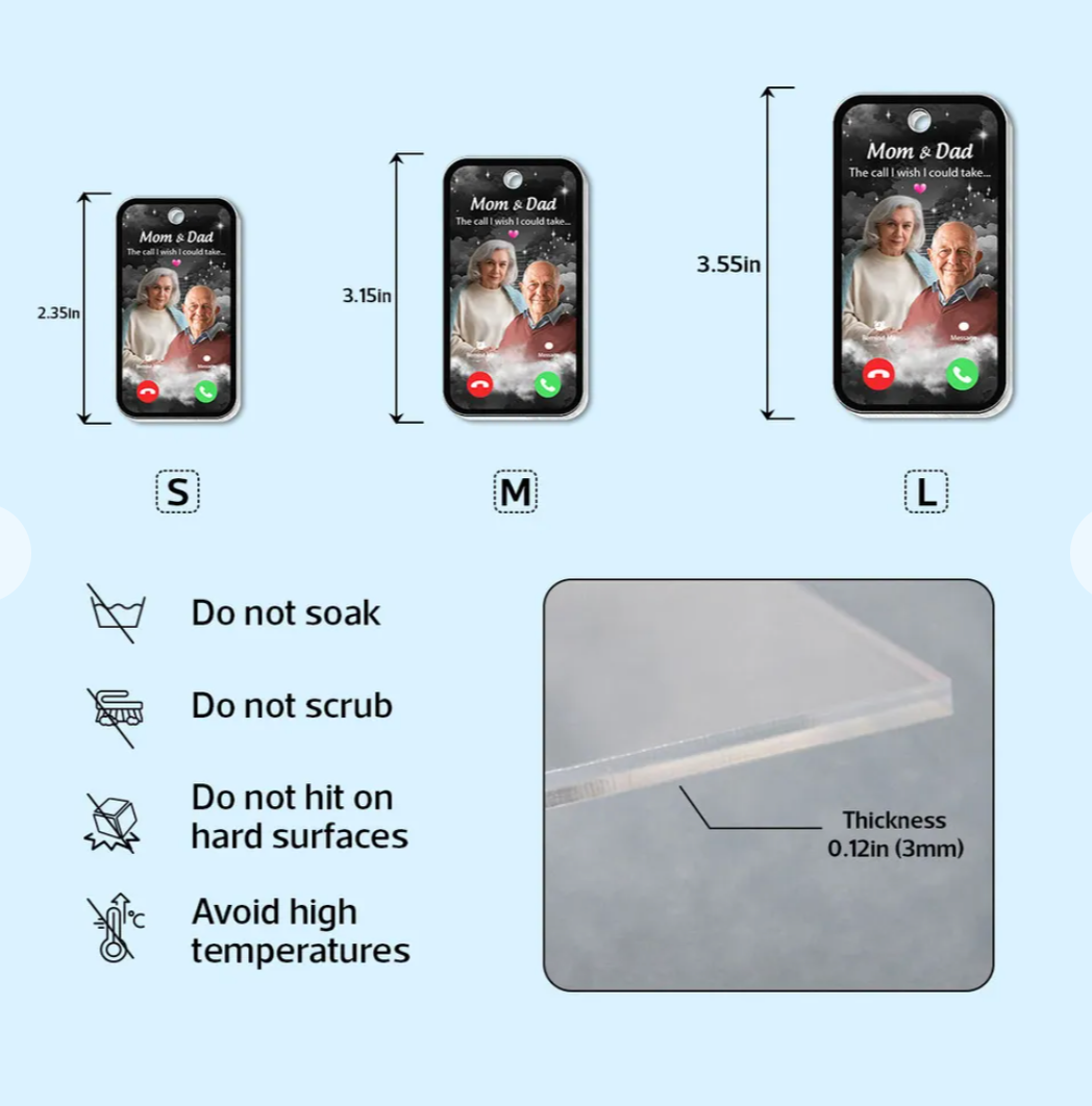 Memories Captured Forever: Imagine holding a keychain that not only carries your keys but also encapsulates a cherished memory. With your uploaded photo and the poignant quote “The call I wish I could take,” this keychain becomes a tangible keepsake. It’s more than just an accessory; it’s a vessel for nostalgia, love, and longing. Every glance at that photo will evoke emotions, reminding you of a special moment or a loved one you miss dearly.